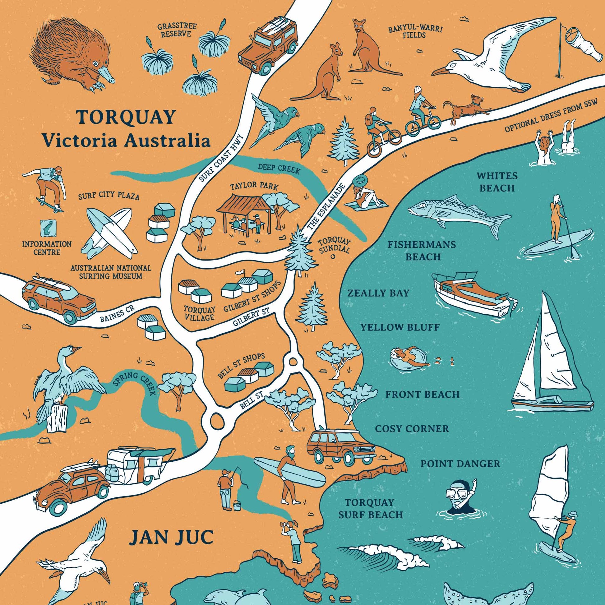 Torquay & Jan Juc | Illustrated Map โ Brittany March